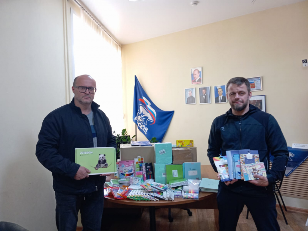 В преддверии учебного года парламентарий Михаил Сурикови секретарь первичного отделения партии Алексей Щукин проявили заботу о подрастающем поколении